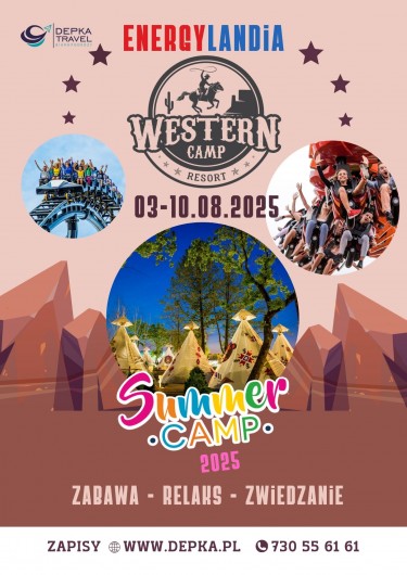 Energylandia cały rok* – 3300,00 zł – Codzienna wizyta podczas Obozu w Energylandii + bilet na cały rok do Energylandii + 20% zniżki dla rodziny na pobyt w Western Camp + zniżka dla rodziny na bilety do Energylandii
